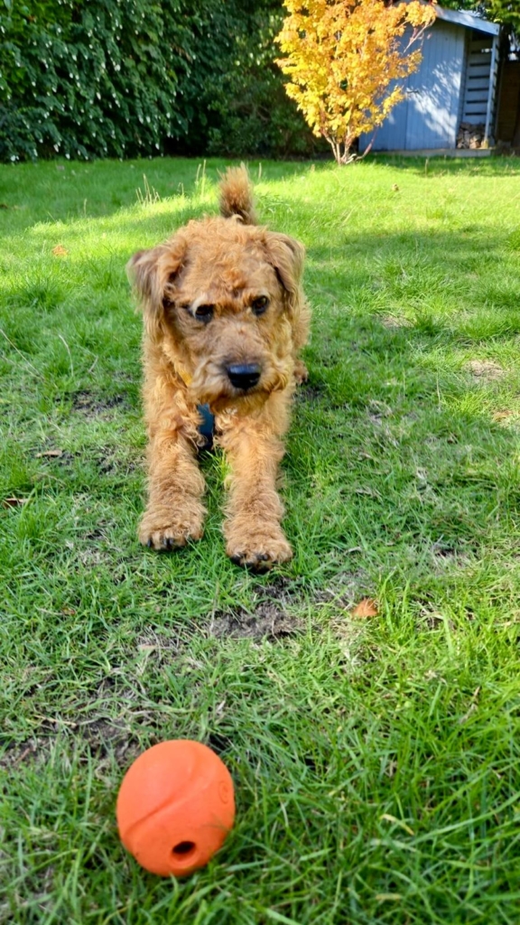 Ted is a 2½ year old Lakeland terrier – a very active dog who needs lots of exercise and mental stimulation. Ted has had lots of training, but is not very sociable with other dogs. No cats